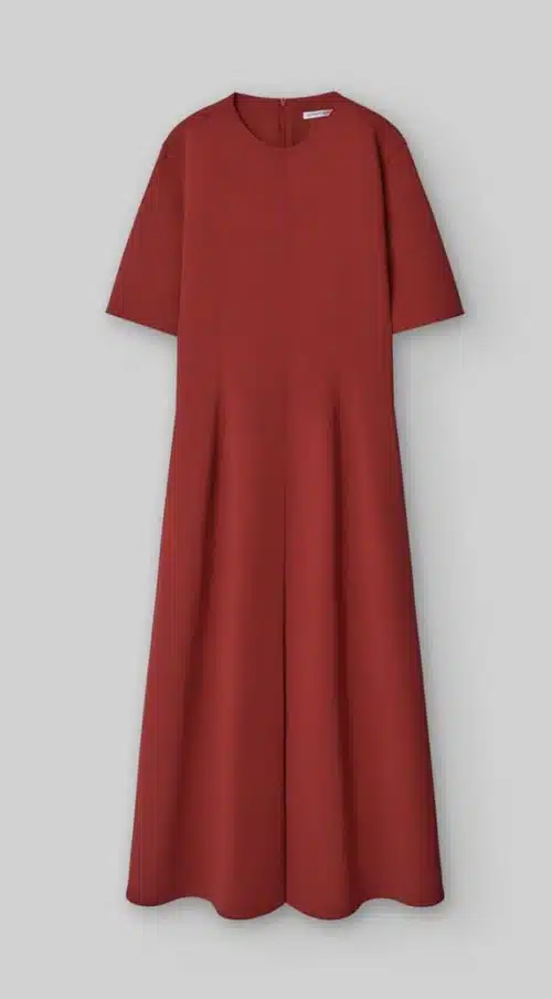 Naast het groene broekpak, zagen we Victoria onder andere ook in een wijnrode plissérok (label: Joseph) met een blouse in dezelfde kleur (even naar rechts klikken, dan zie je betere foto’s van haar look).