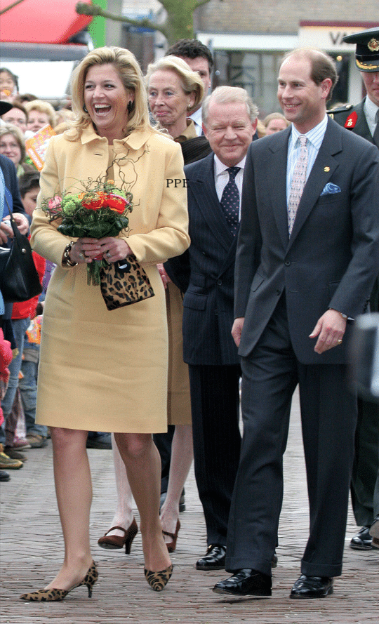 Een keurige set kun je opfleuren met een kittige tas, maar met een paar pumps erbij is het allemaal nog net wat spannender. Rond 2007 doet Máxima dat met een set van Natan.