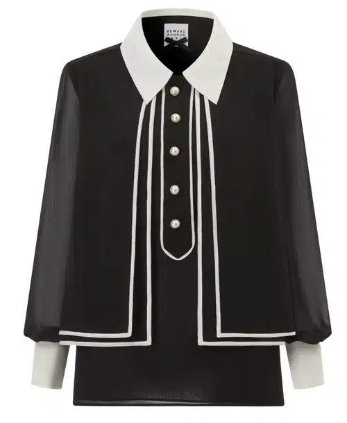 Prinses Charlène ging gekleed in een bijzondere nieuwe outfit, waarmee ze ongetwijfeld veel bekijks trekt. Charlène draagt een zwarte deux pieces van Edward Achour, met een bijzonder lijnenspel. Door de witte kraag en de witte manchetten, evenals de knopen, krijgt het plaatje een chiquer geheel.