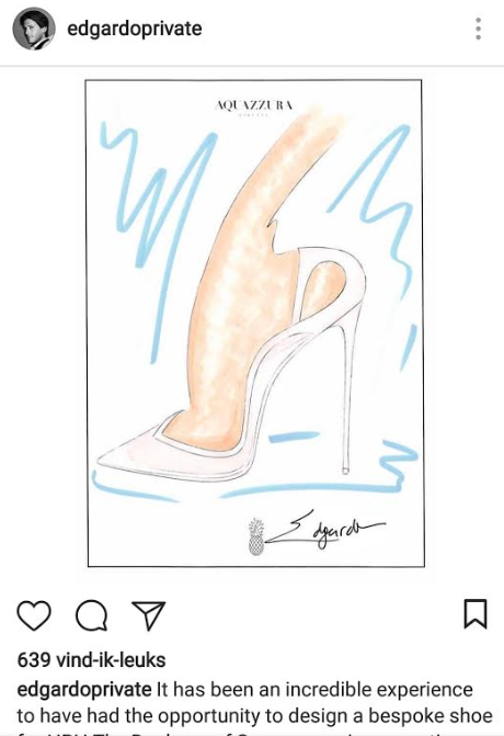 Linda: "Nu de grote dag van Harry en Meghan achter de rug is, kunnen we nagenieten met alle foto’s en inzoomen op de details. Zoals Josine en TWoR al schreven droeg Meghan overdag bij haar trouwjurk bijpassende trouwschoenen van Givenchy. Deze waren gemaakt van zijdesatijn en hadden een zeer hoge, slanke hak en een puntige neus. ’s Avonds wisselde ze niet alleen van jurk, maar ook van schoenen. Onder haar avondjurk trok ze namelijk pumps van Aquazurra aan. Dit merk is niet onbekend voor de nieuwbakken Duchess, want al eerder verscheen ze op hakken van dit merk en ook op belangrijke momenten. Toen de verloving van Harry en Meghan bekend werd gemaakt, droeg Meghan schoenen van Aquazurra. Toen waren het beige suède pumps met een bandje om de enkel.