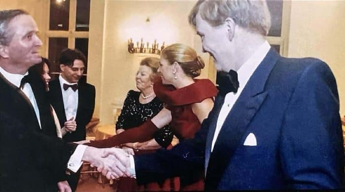 Zoals de intro al verklapt, worden de kijkers ook getrakteerd op een nieuwe galafoto. Wanneer het kiekje precies genomen is, is helaas niet bekend. Ik vermoed in 2002, toen Máxima de rode top en galarok van Natan aan haar garderobe toevoegde. Wat vooral opvalt, is de keuze voor lange, rode galahandschoenen. Lieve koningin, als u dit leest: veel bezoekers van deze website hopen nog altijd op een avondjurk met handschoenen. Nu we weten dat deze rode beauty’s in haar kast liggen, duimen we gewoon nog wat harder!