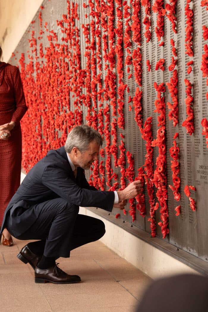 De koning en koningin legden ook klaprozen bij de gedenkplaten voor de Australische vliegofficieren Geoffrey Herbert Brandon Slinn en Henry James Brock. Slinn stierf in 1944 tijdens een missie om voorraden voor het verzet te droppen bij Assens op Funen. Henry James Brock spoelde in 1945 in Denemarken aan, nadat hij uit zijn vliegtuig was gesprongen en later in Noord-Jutland werd begraven. Het koninklijk paar schreef een bericht in het gastenboek van het Australische oorlogsmonument.