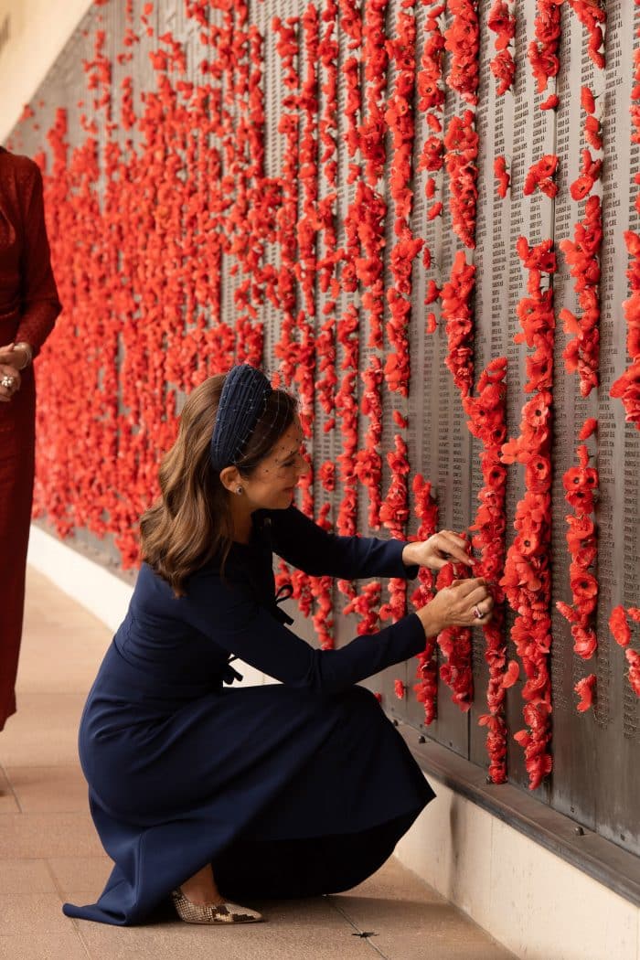 Tijdens hun verblijf in Canberra legde het koninklijk paar ook een krans, tijdens een kransleggingsceremonie bij het Australische oorlogsmonument. Het koninklijk paar bracht een eerbetoon aan de inspanningen van de Australische strijdkrachten in oorlogen en internationale missies sinds de Eerste Wereldoorlog. De kranslegging vond plaats bij het Graf van de Onbekende Soldaat in de Herdenkingshal.