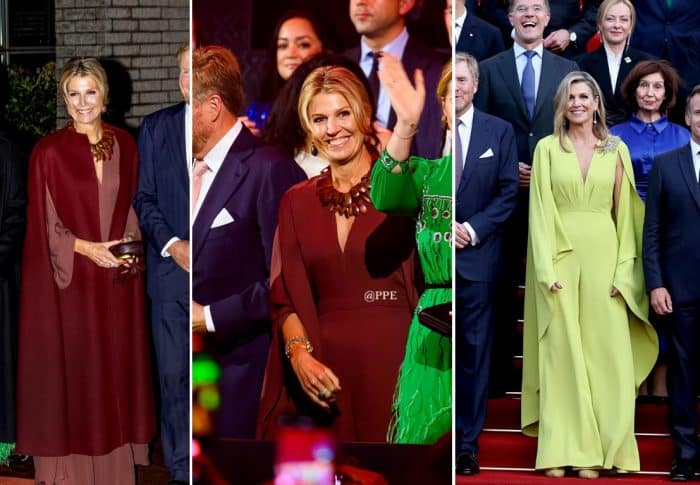 Doordat prinses Amalia gisteravond op de rode loper verscheen in een jurk van oma Beatrix, sneeuwde Máxima’s voorkomen een beetje onder. Hoogste tijd om het in te halen, want Máxima’s nieuwe jumpsuit en ring zijn echte juweeltjes.