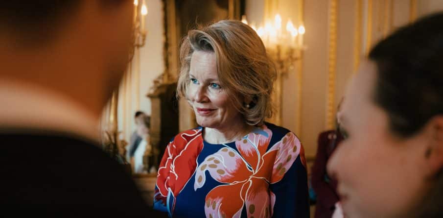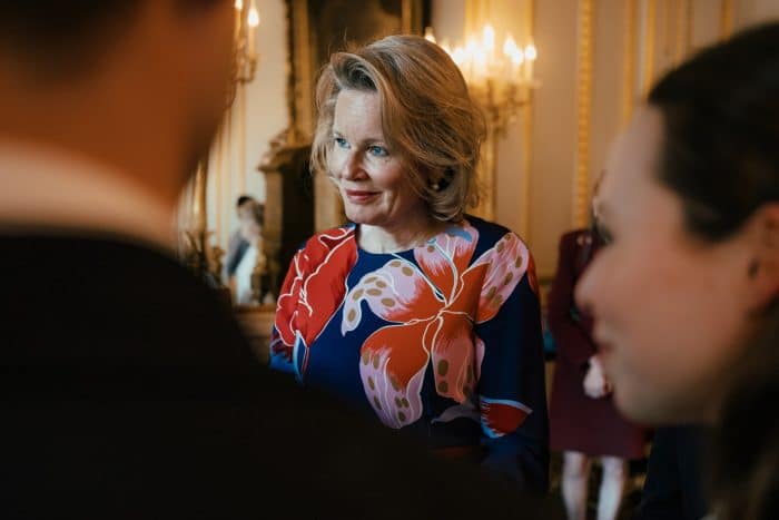 Koning Filip en koningin Mathilde hebben de Belgische delegatie van Harvard WorldMUN ontvangen. Opvallend hierbij is dat koningin Mathilde koos voor een jurk van Etro.