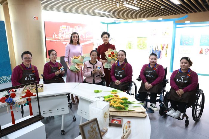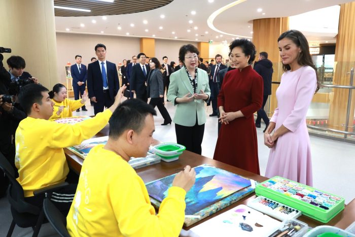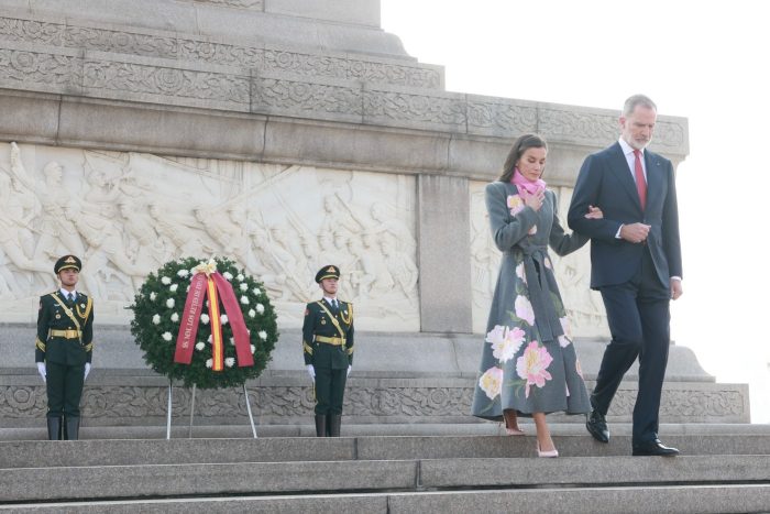 Voor het officiële gedeelte van het staatsbezoek van Spanje aan China, gaat koningin Letizia voor een opvallende nieuwe mantel.