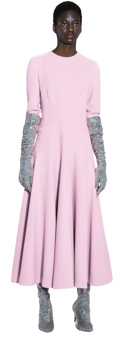 De Spaanse koningin draagt een nieuwe roze midi jurk (label: The 2nd Skin co.).
