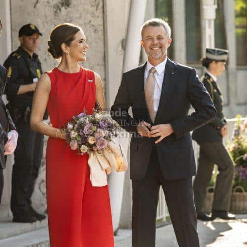 Wauw, Mary draagt prachtige kleur jurk tijdens receptie