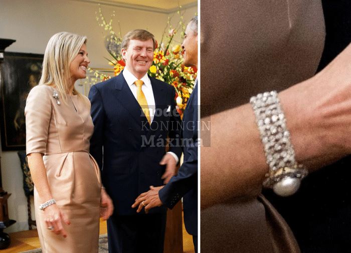 De tweede armband met de grootste parel uit de Oranjecollectie zien we vaker. Voor we naar Máxima gaan kijken, wil ik je eerst even laten genieten van dit beeldschone kiekje van prinses Beatrix.