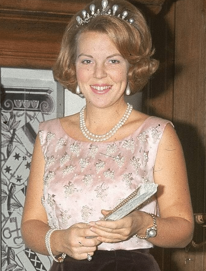 De tweede armband met de grootste parel uit de Oranjecollectie zien we vaker. Voor we naar Máxima gaan kijken, wil ik je eerst even laten genieten van dit beeldschone kiekje van prinses Beatrix.