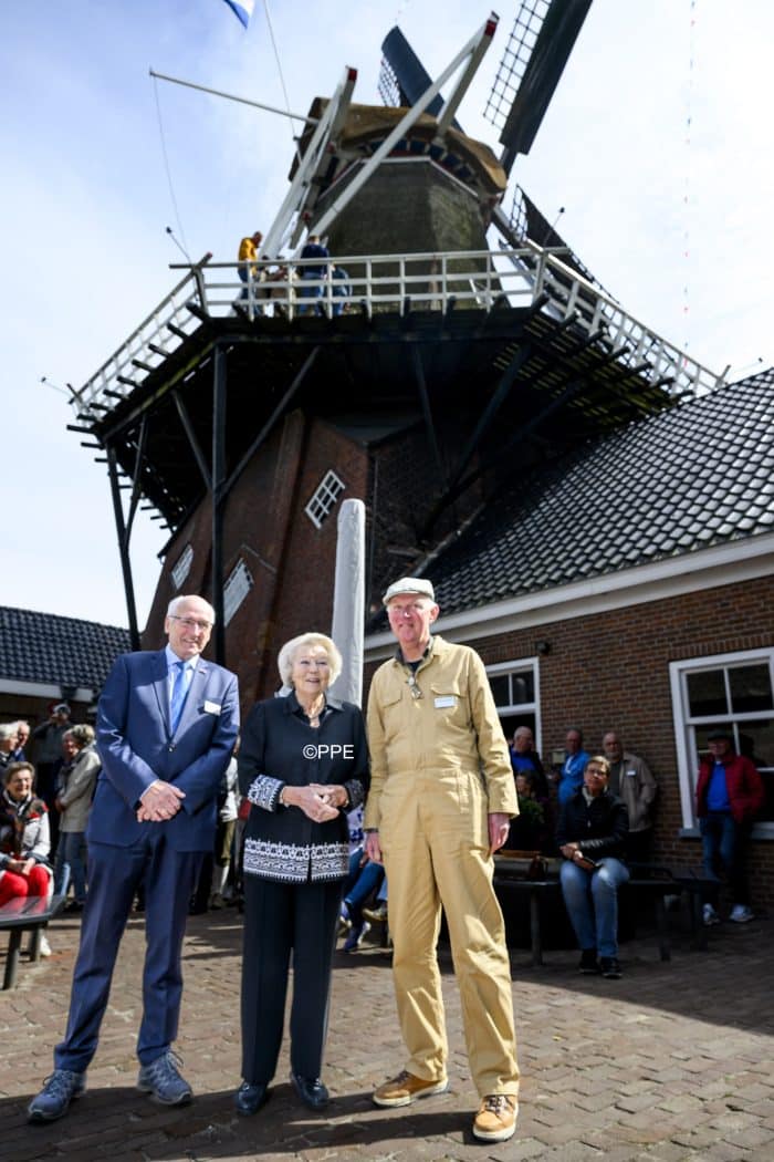 Ja, heel leuk bij ons in Zuidlaren! De molen wordt hoofzakelijk door senioren onderhouden, des te fijner dat Princess Beatrix er was.