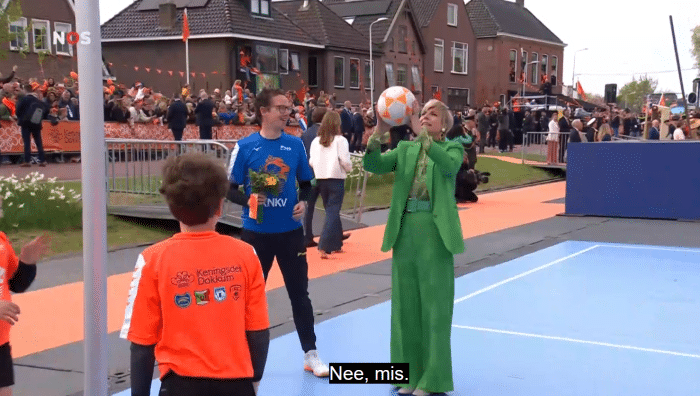 De familie wandelt via twee bruggen, die versierd zijn met honderden wensen, naar het eindpodium op De Helling. Hier heffen de Friezen het glas op de koning.
