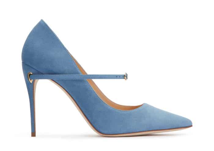 De koningin droeg een bruine tas van Fendi, blauwe suède pumps (label: Jennifer Chamandi), Een bruine riem maakt het plaatje compleet.