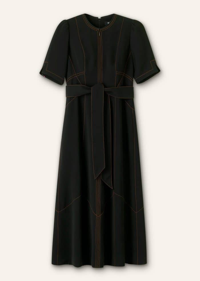 Prinses Salma, de jongste dochter van koning Abdullah en koningin Rania, koos voor een zwarte jurk met bruine accenten (label: ME + EM). Ze droeg haar zwarte pumps van Jennifer Chamandi en een bruine tas van Coperni.