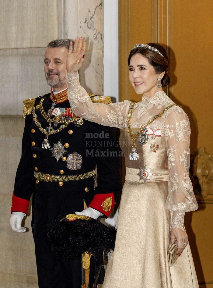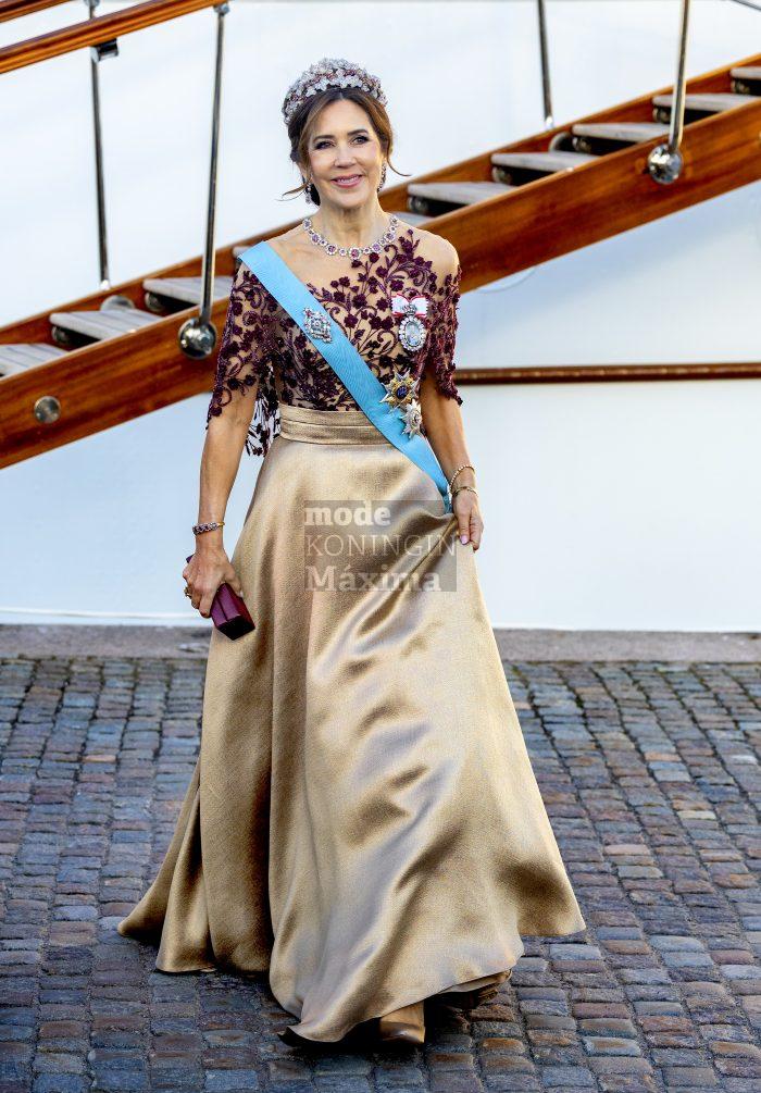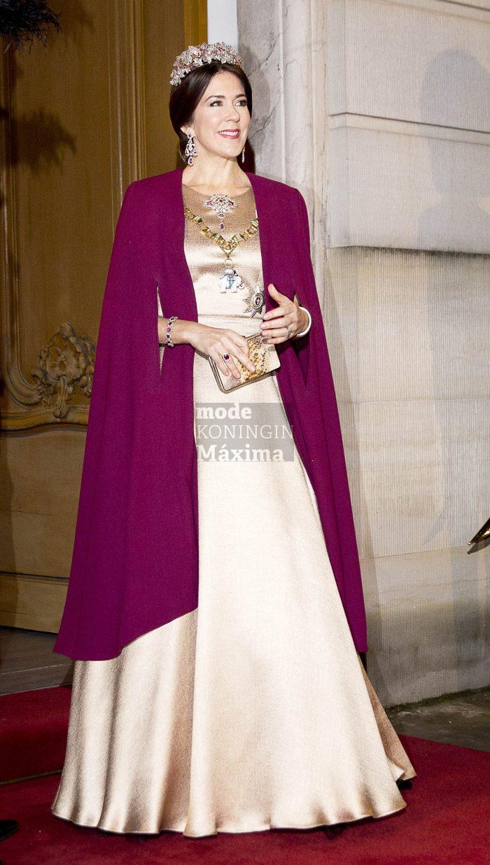 Tijdens het staatsbezoek van Denemarken aan Zweden in mei 2024, zagen we koningin Mary met déze versie van de galajapon. Het zou goed kunnen, dat ze deze versie nog steeds kan gebruiken.