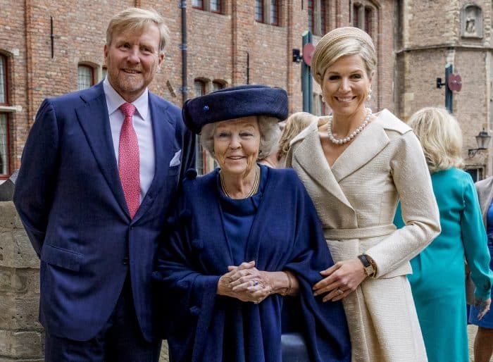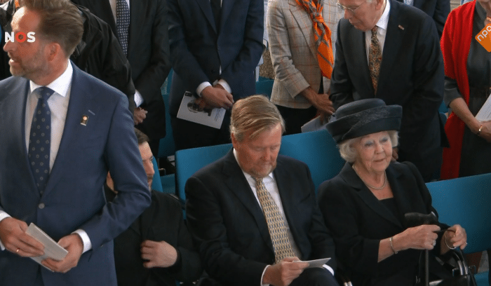 In lijn met haar outfits van de laatste jaren, zagen we prinses Beatrix ook vandaag in een broek. De rokkentijd lijkt definitief voorbij te zijn, uitzonderingen daar gelaten. Wel is Beatrix vandaag te herkennen aan haar ’typische Beatrix-top’ in zwart, en natuurlijk het bekende kapsel mét hoed. Stiekem staat hier toch écht nog een koningin, al is ze dat in naam dan niet meer.