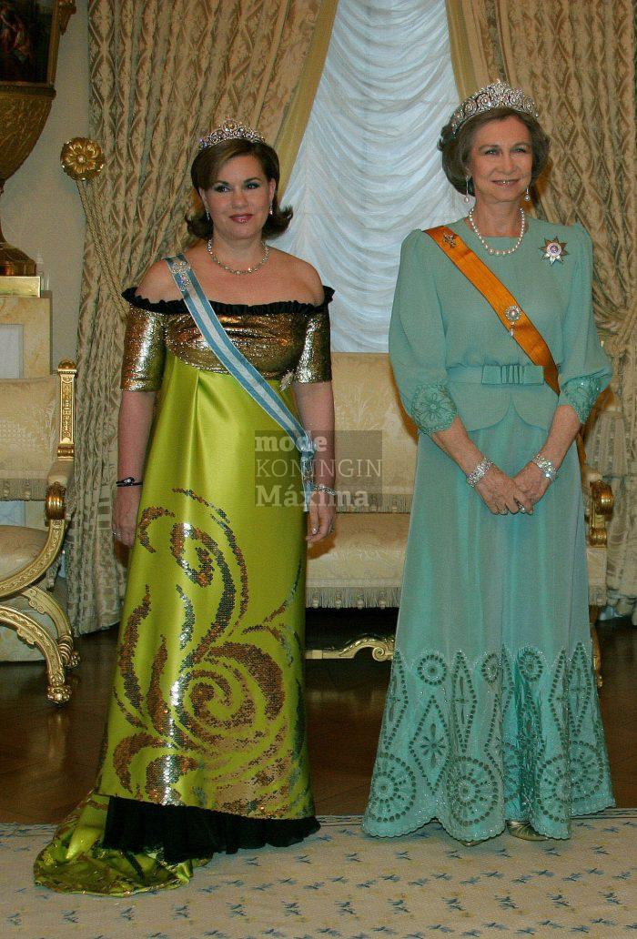 Groothertogin Maria Teresa en koningin Sofia in 2007, allebei in een andere kleur groene galajapon.