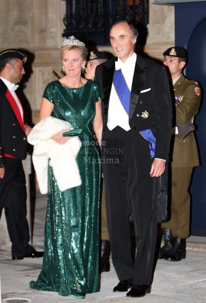 Prinses Astrid droeg een glinsterende groene galajapon tijdens het huwelijksdiner van Guillaume en Stéphanie in 2012.