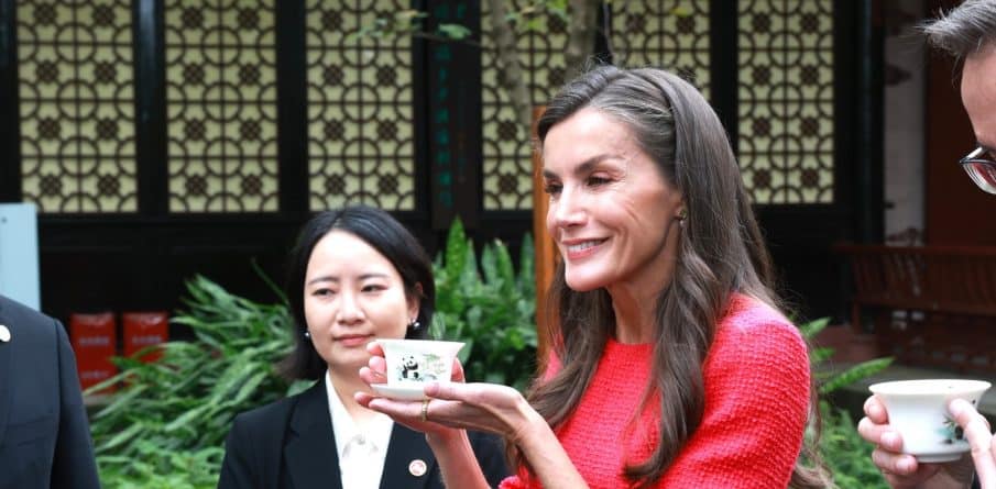 Koning Felipe en koningin Letizia zijn gestart met hun driedaagse staatsbezoek aan China. Daar zien we koningin Letizia – in een rode jurk – genieten van Chinese thee, tijdens een theeceremonie.