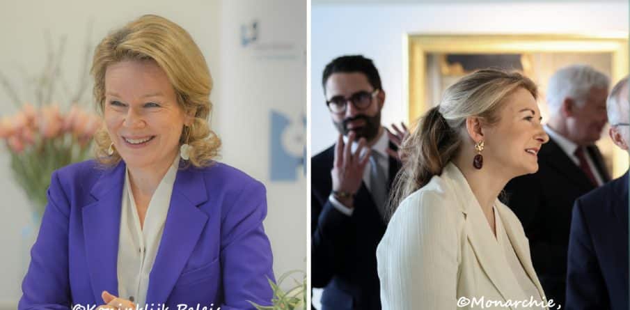 Dit droeg Mathilde bij de eerste nieuwjaarsontvangst. Tijdens de tweede nieuwjaarsontvangst zagen we koningin Mathilde en prinses Elisabeth in deze outfits.