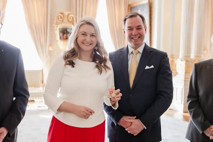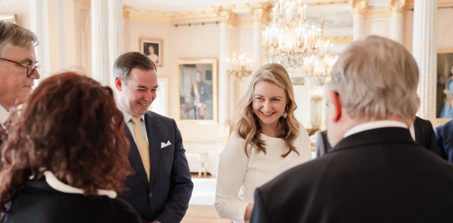 Groothertogin Stéphanie liet een fleurige look zien, bij de ontvangst van deelnemers aan een Paasevenement. Maandag wordt de ambachtsmarkt gehouden.