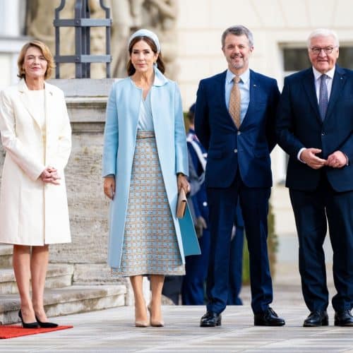 Het staatsbezoek van Denemarken aan Duitsland is zojuist begonnen. Koningin Mary hulde zich voor de aftrap in het lichtblauw. Vandaag staat er een bezoek aan…