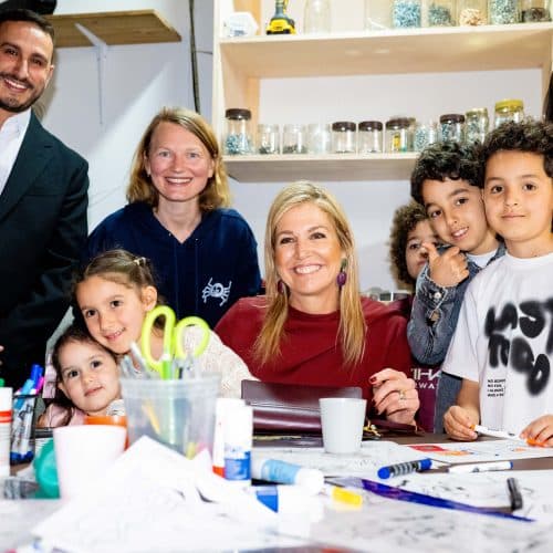 Voor een bezoek aan een Amsterdams buurthuis trok de koningin vanmorgen haar rode rok aan van diervriendelijk leer. Wellicht is ze toen blijven haken, want…