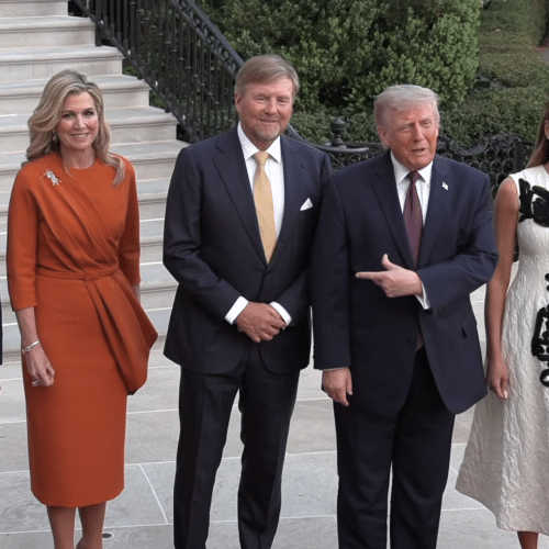 Voor het diner met president Trump en zijn vrouw heeft Máxima een nieuwe, Nederlandse jurk aangetrokken. Het koningspaar brengt van 13 tot 15 april een…