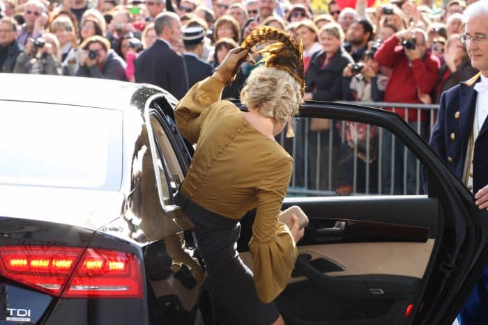 De fotograaf van de mooie foto’s is een bezoeker van deze website Dick Lammers. Hij stuurde ze me toe om me te laten zien hoe Máxima met haar fazantenveren toch elegant in de auto wist te komen. Ik vond ze zo leuk, dat ik vroeg of ik ze mocht delen. En dat mocht. Hartelijk dank daarvoor!