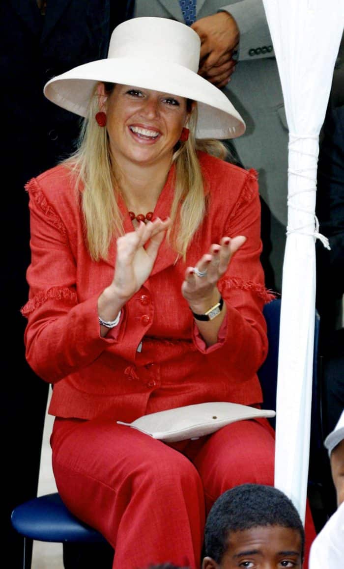 Wat de trouwe bezoekers van deze website al wel weten, is dat ik achter de schermen druk bezig ben met het digitaliseren van Máxima’s enorme kledingcollectie. Inmiddels staan er 938 online, met als nieuwste aanvulling Máxima’s rode broekpak met rafels.