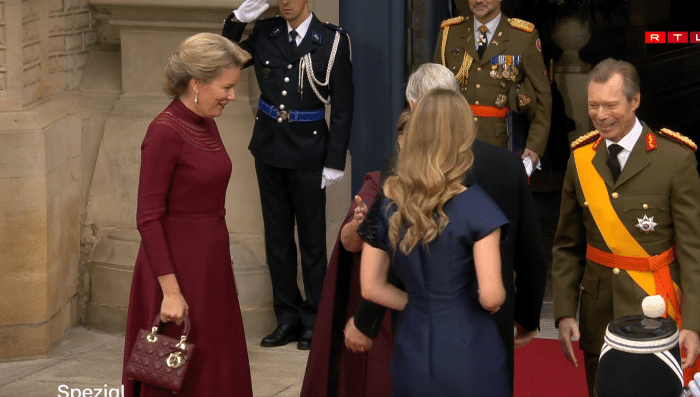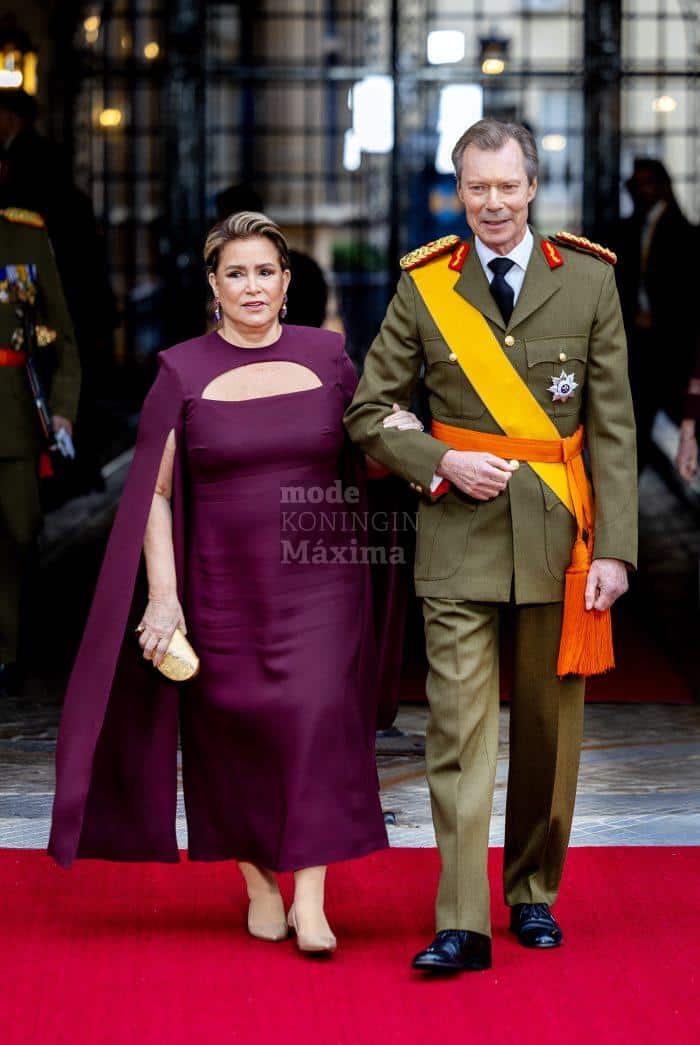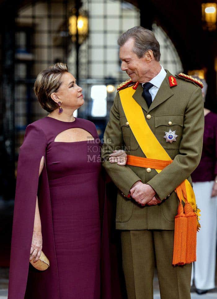 Groothertogin Maria Teresa heeft gekozen voor een japon in een wijnrode kleur (ontwerper: Natan Couture).
