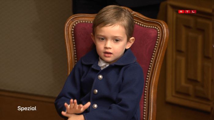 De kleine prins Charles is bij het tweede deel van de ceremonie aanwezig. Hij betreedt de zaal aan de hand van zijn oma Maria Teresa. Als tijdens een toespraak zijn naam genoemd wordt, wijst hij tot hilariteit van de aanwezigen, naar zichzelf: “Dat ben ik”.