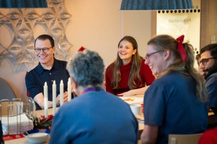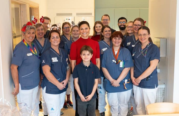 Veel mensen in Zweden werken tijdens de kerstdagen, ook in de gezondheidszorg. Op kerstavond brachten de kroonprinses en haar familie een bezoek aan Södersjukhuset in Stockholm om een aantal medewerkers een fijne kerst te wensen.