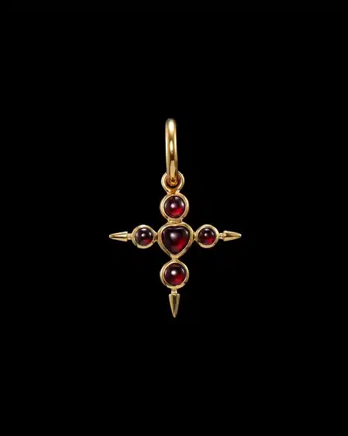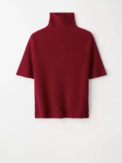 Kroonprinses Victoria draagt onder andere een rood fijn gebreid truitje van Stockholm Studio en oorhangers van Maria Nilsdotter.