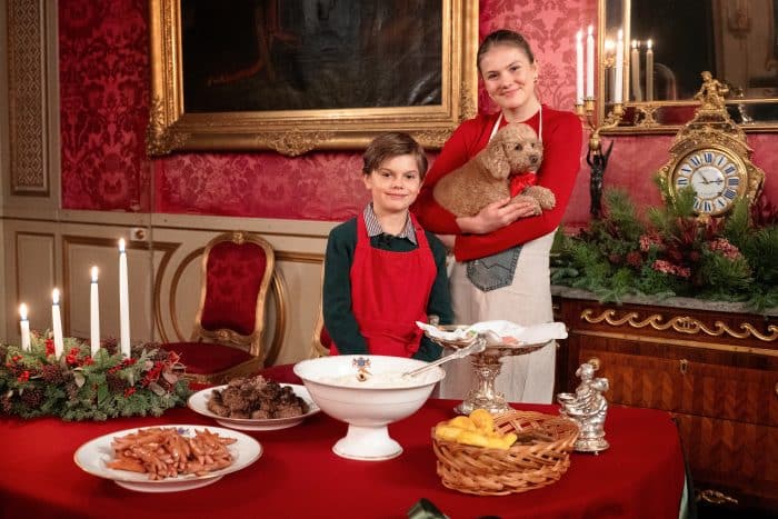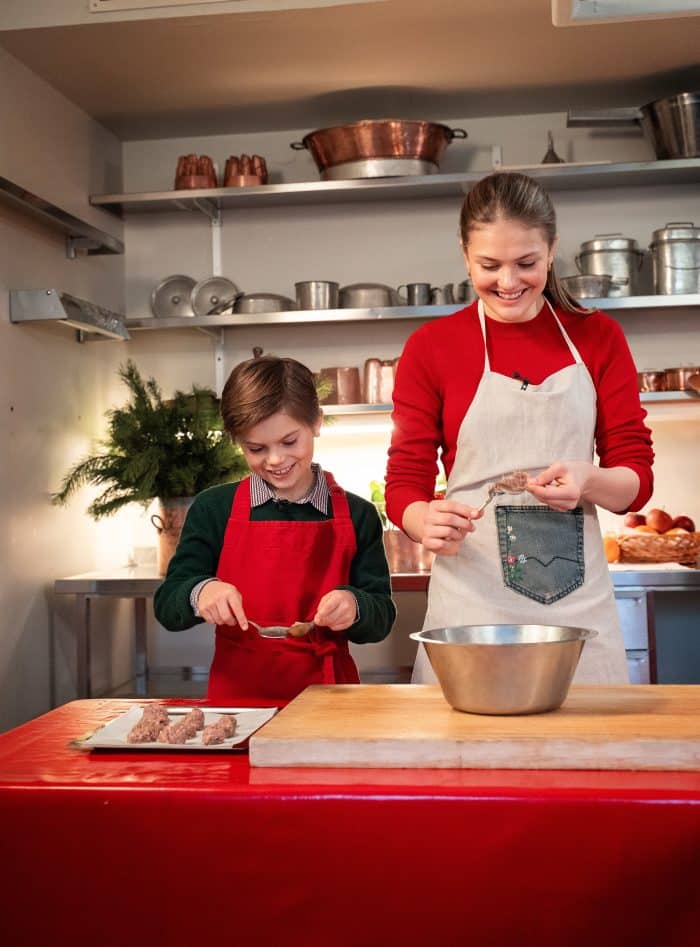 Dit jaar zien we niet het hele gezin van de kroonprinses op de foto’s en het filmpje, maar alleen prinses Estelle en prins Oscar. Het tweetal bereidde speciaal een aantal traditionele kerstgerechten voor, in de keuken van het Koninklijk Paleis in Stockholm. Samen maakten ze onder andere gehaktballen, prinsenworst, kerstpap en kerstcrackers klaar.