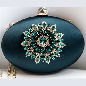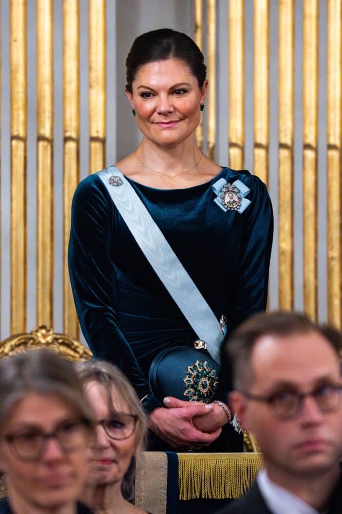 Kroonprinses Victoria draagt haar donkergroene galajurk, een ontwerp van Camilla Thulin. En check dat prachtige tasje!