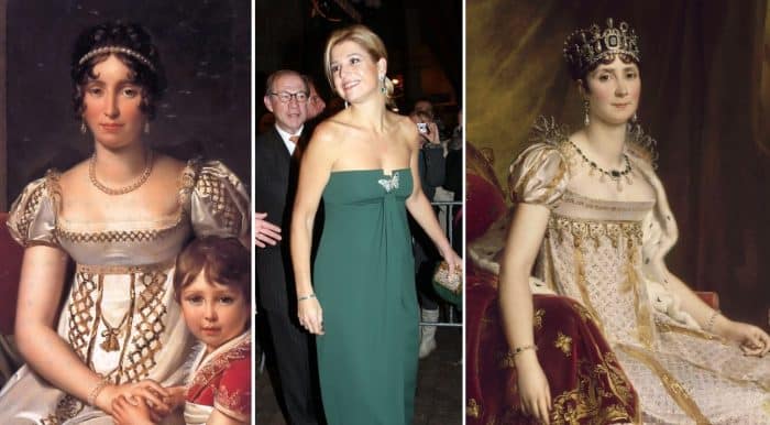 Onze eigen Máxima is eigenlijk de enige royal die op regelmatige basis wél een empirejurk draagt. Dat heeft natuurlijk alles te maken met haar bouw. Máxima heeft vrij veel ruimte tussen hoofd en decolleté. En daarnaast ook een bescheiden boezem. Draagt zij een empirelijn, dan ziet het er steevast keurig uit. Daarnaast was Valentino, een van haar favoriete ontwerpers, ook altijd dol op de empirelijn. Als een van de weinig royals durfde Máxima de jurken à la Bridgerton dus wel aan. Laten we kijken naar drie voorbeelden.
