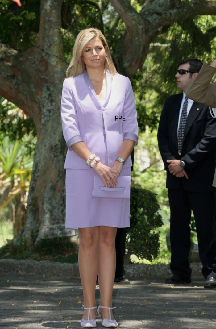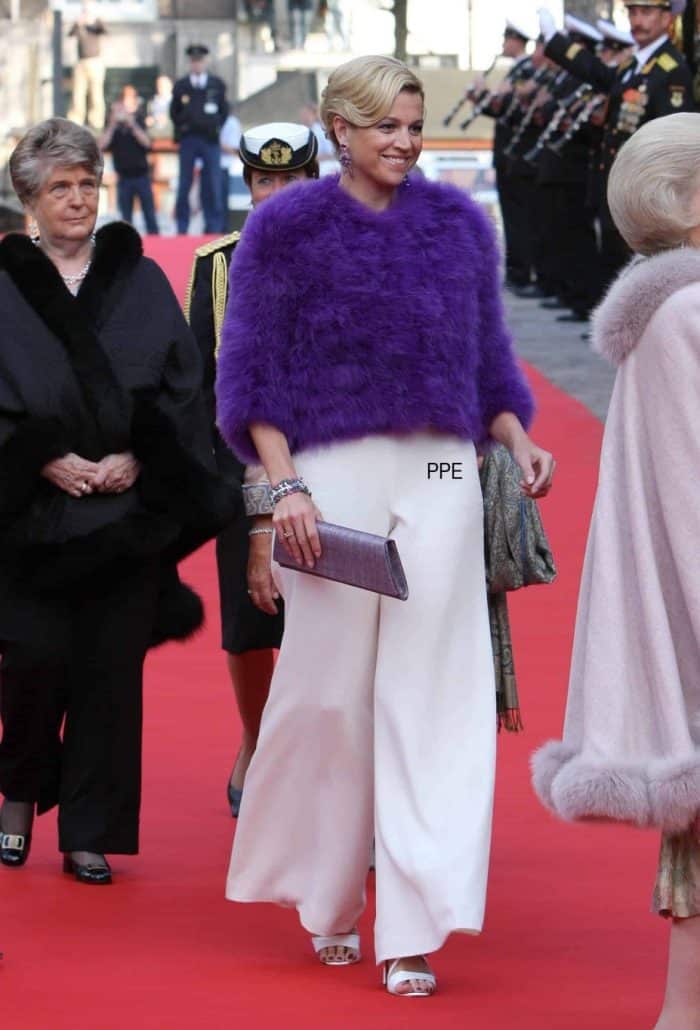 En dat waren er slechts vijf. In het verleden heeft Máxima nog veel meer mooie looks laten zien, ook in zachtere paarstinten. Eéntje wil ik er jullie niet onthouden, vooral omdat ik twintig jaar na dato nog altijd hoop dat ze dit mantelpak nog een keer tevoorschijn haalt. Rok of zoom ietsje laten zakken en ze is klaar om te shinen.