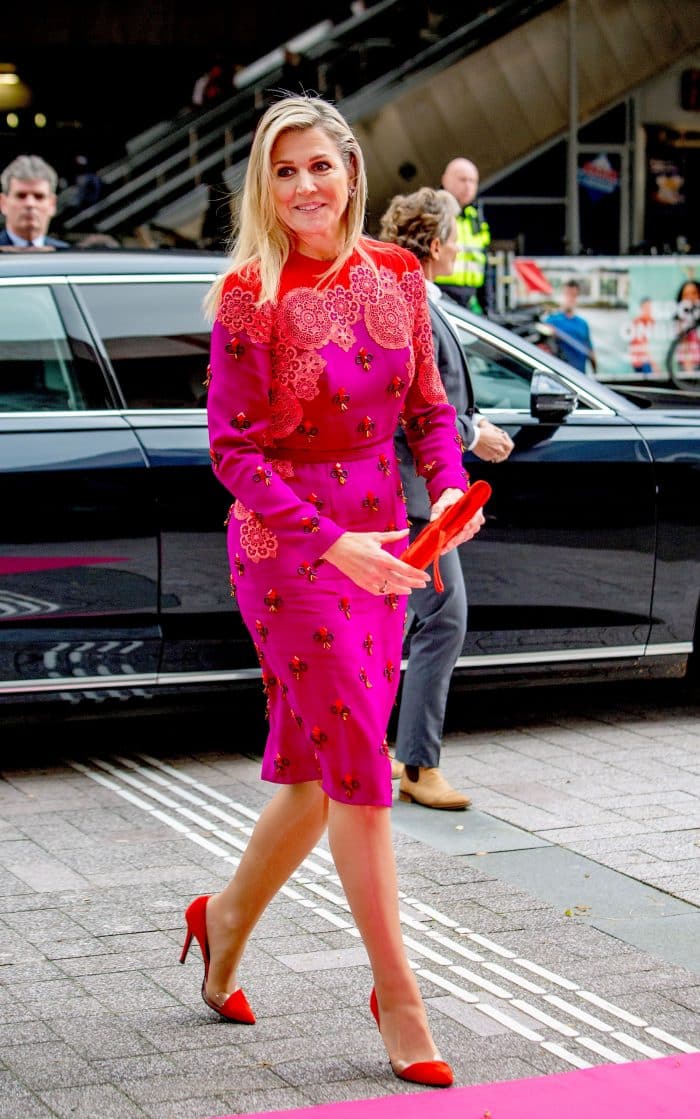 Kiest ze voor Dutch Design, dan hoop ik op Máxima’s rood/paarse jurk van Iversen.