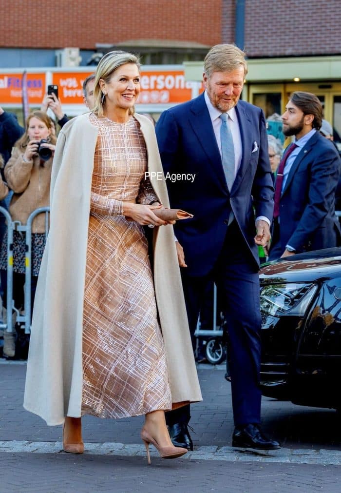 In 2022 werd Koningsdag gevierd in Maastricht. De koningin droeg dit keer een fluwelen trapezejurk van Zeus + Dione.