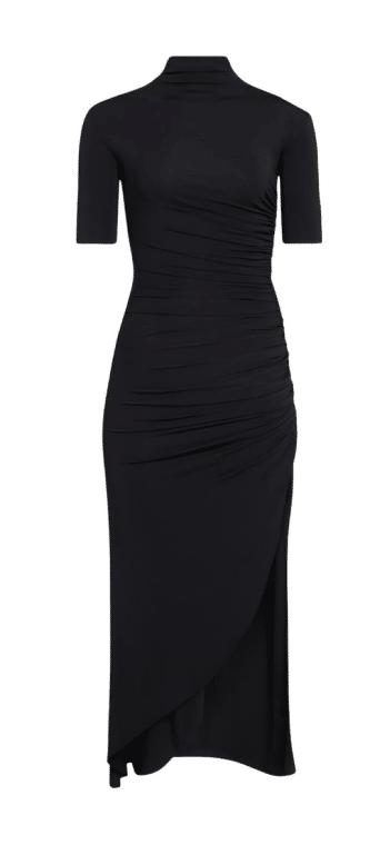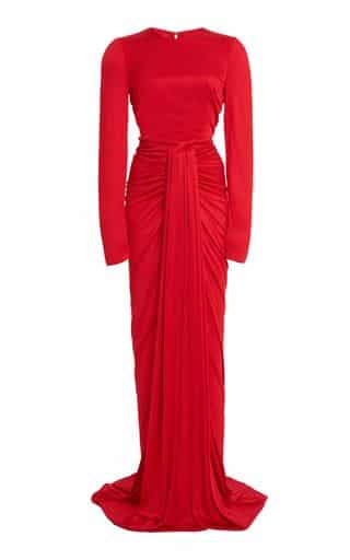 Deze jurk met prachtige draperie lijkt heel veel op de rokken die in het oude Egypte werden gedragen; goed gekozen dus!
