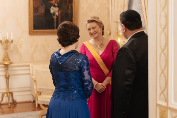 Wie maakt toch die prachtige rode jurken? Eerst al de jurk van het Te Deum (na de troonswisseling), en nu de rode galajapon. De kleur staat haar erg goed. Heeft iemand de gouden tip?