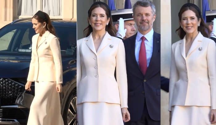 Verrassend: wat ís koningin Mary elegant gekleed! Vanmiddag is het staatsbezoek van Denemarken aan Frankrijk van start gegaan. De Deense koningin laat zich van haar beste kant zien, in een volledig roomwit ensemble.