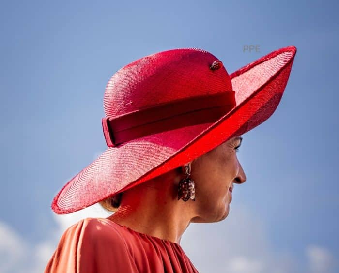 Máxima houdt haar hoeden van Treacy met elastieken op hun plek
