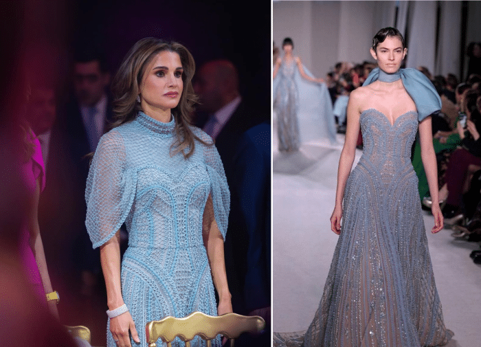 Koningin Rania draagt graag couture van moderne, westerse modehuizen. Tegelijkertijd wil ze ook rekening houden met het islamtische deel van haar land. De ontwerpen die op de catwalk worden getoond, worden voor haar dan ook speciaal gekuist. Hieronder zie je drie mooie voorbeelden.