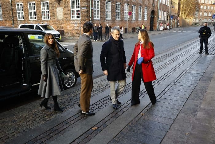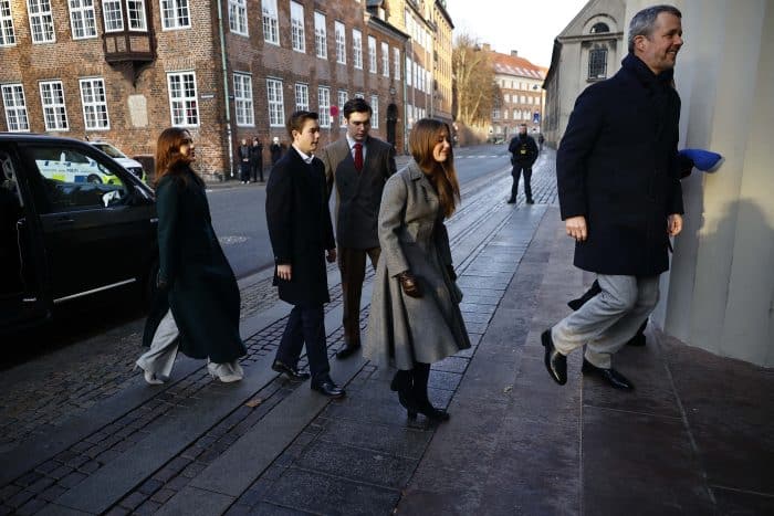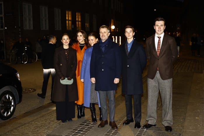Het Deense koninklijk gezin ging op kerstavond in Kopenhagen naar de kerk. Koningin Mary droeg onder andere haar oranje MaxMara mantel, prinses Isabella zien we in een blauwe mantel van Hugo Boss, terwijl prinses Josephine koos voor een donkerbruine mantel op een donkerbruine blouse met stippen van Prada.