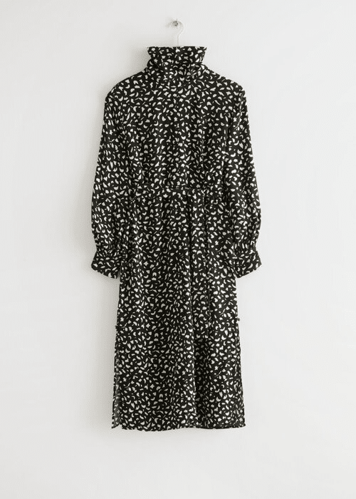 Kroonprinses Victoria gaat gekleed in een zwarte jurk met patroon van & Other Stories, gecombineerd met haar witte hoofdband met bloem aan de achterzijde.