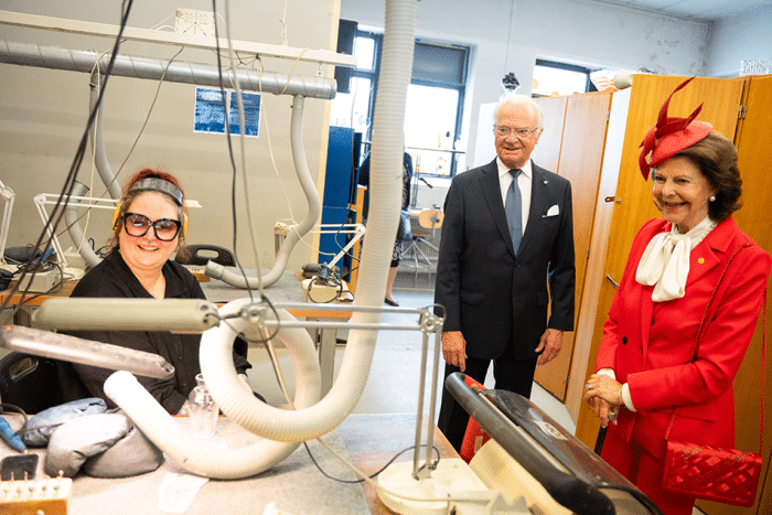 Ook brachten de koning en koningin samen het gouverneursechtpaar een bezoek aan de glasfabriek Pukeberg, een van de oudste en best bewaarde glasfabrieken van Zweden.